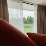 Het binnendecor biedt uitzicht op de tuin en is voorzien van een flatscreen TV met satellietzenders.